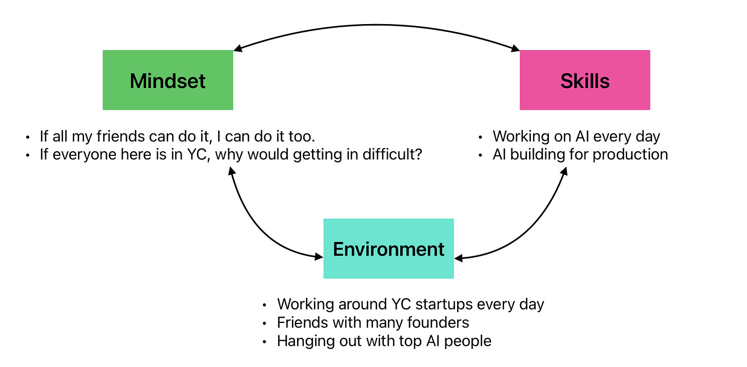 Another misconception I want to address is the common belief that ambition is innate within us (i.e., we cannot alter our level of ambition). I strongly disagree with this notion, as ambition is the interplay of mindset, skills, and environment, and therefore, it can grow. Let me share with you my journey of building ambition in AI.