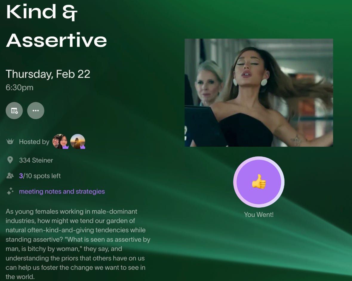 Hence, Svitlana and I hosted a "Kind and Assertive" event where we invited women to let go of all the mistreatment they had experienced or social constructs that already existed. We focused solely on practical strategies we had learned and experimented with, which we shared and practiced with each other through examples and role-play.