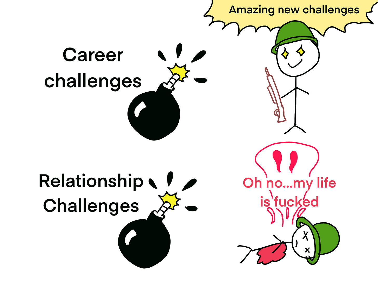 It feels diligent to keep working on a career, but it feels dumb to keep working on relationships. (aka career is more valuable than relationship)