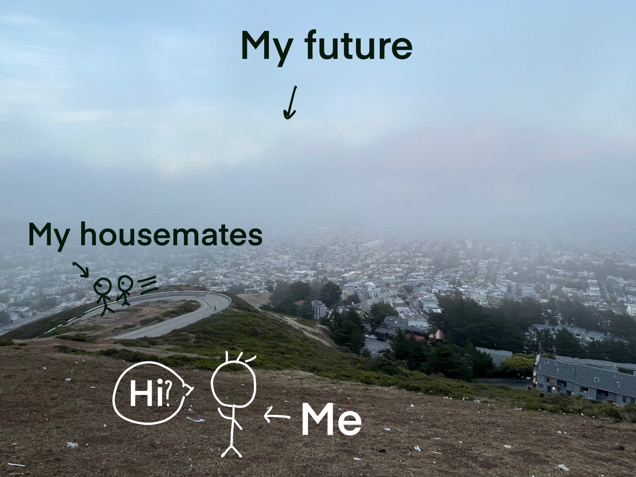 I will start working tomorrow, but I feel nervous and scared because I'm embarking on an unknown journey. Our hacker house, Powerhouse, was disbanded today. Now, I am on my own in this crazy world, with an unguided journey ahead of me. I will be in a new house by myself, working at a new, messy San Francisco startup without knowing if I am capable of doing LLM, or if I will work well with the founders.