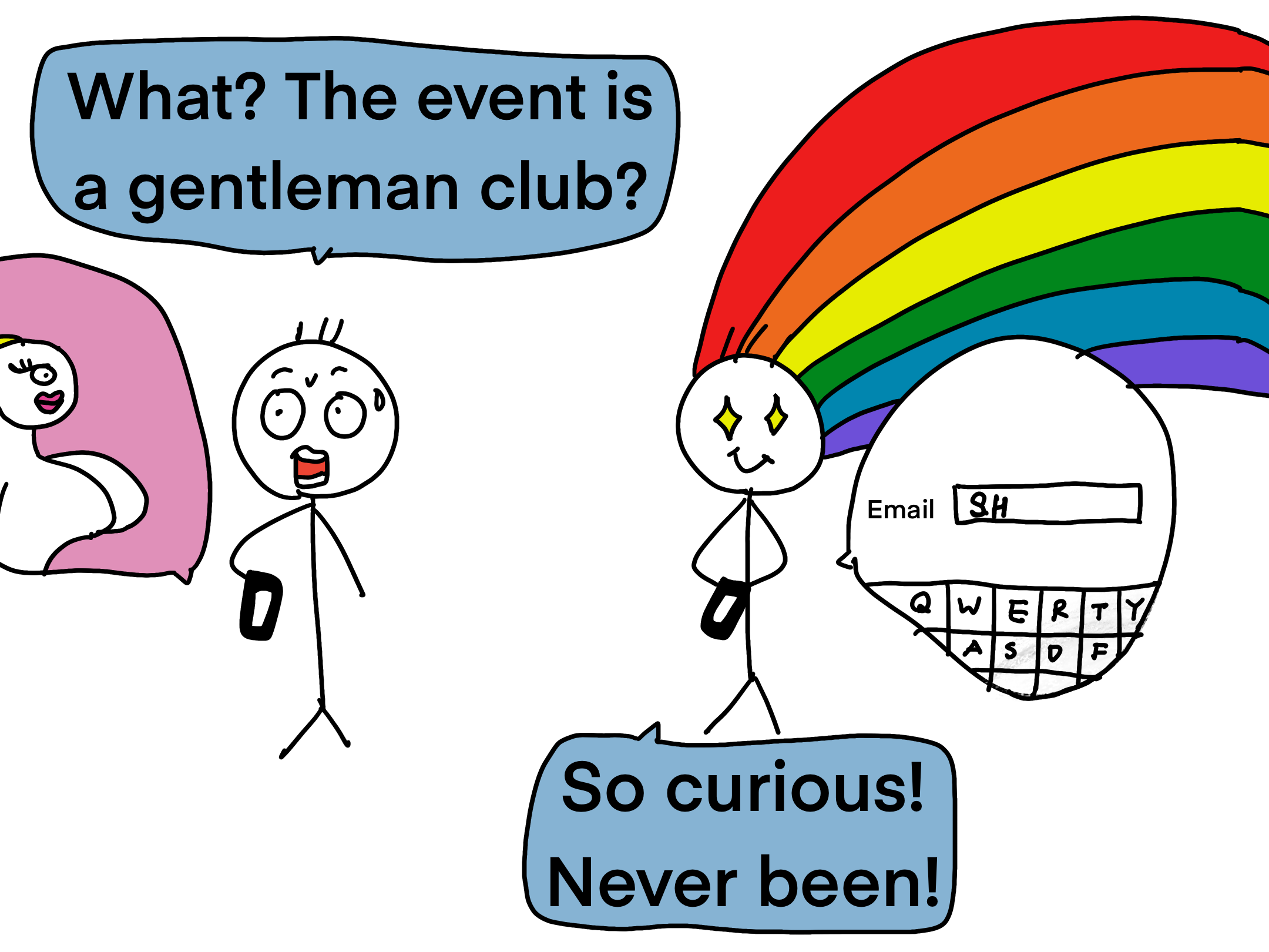Once we passed by a poster that looked like a party. Out of curiosity, I scanned the QR code, and then…