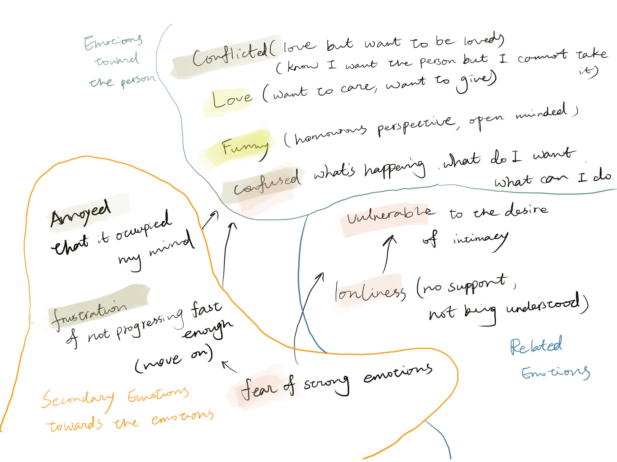 First I start from trying to understand what emotions are inside me. I make it super specific by linking the relationships among different emotions to gain an in-depth understanding of myself.