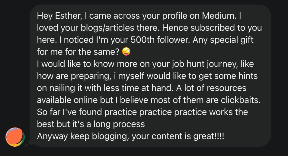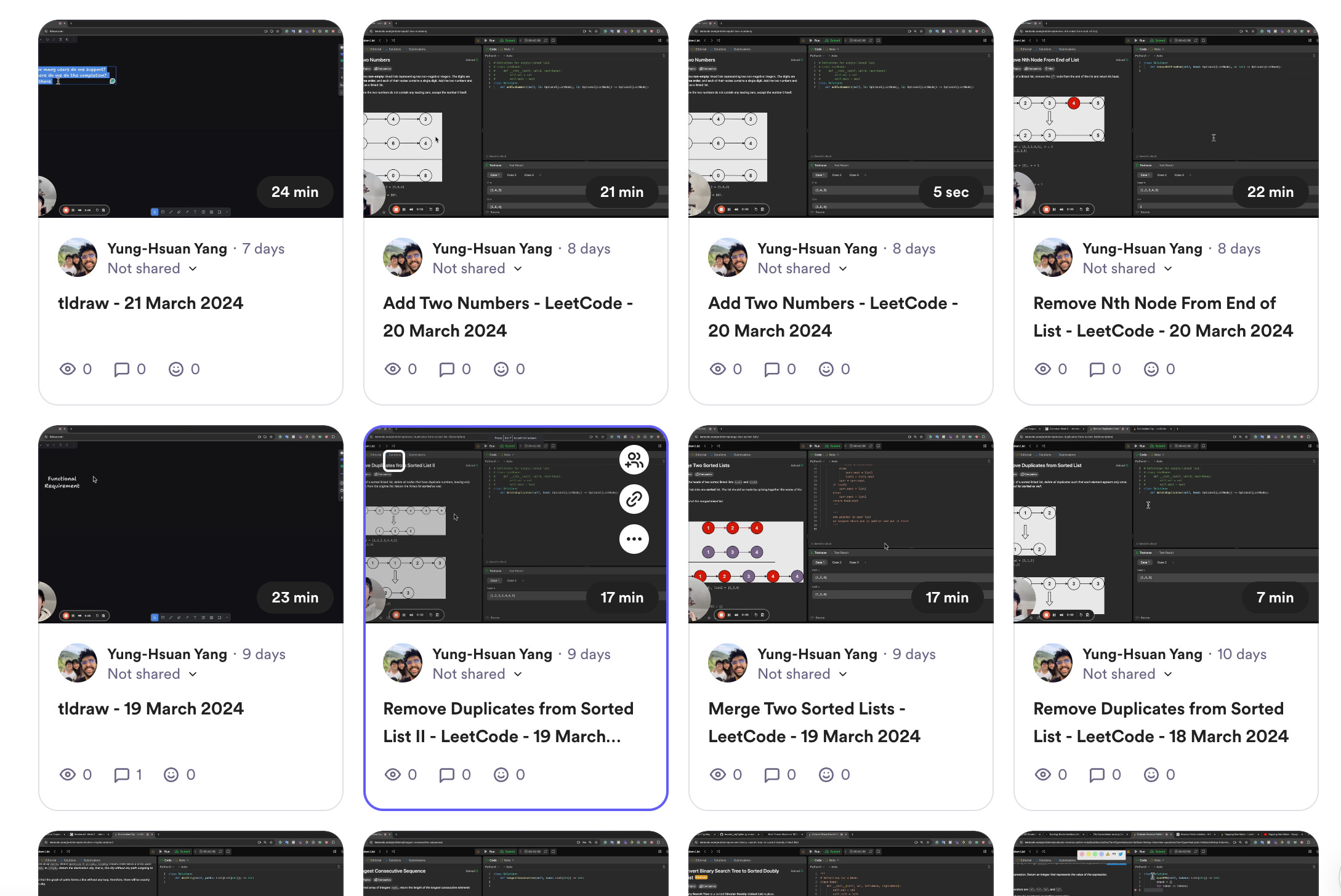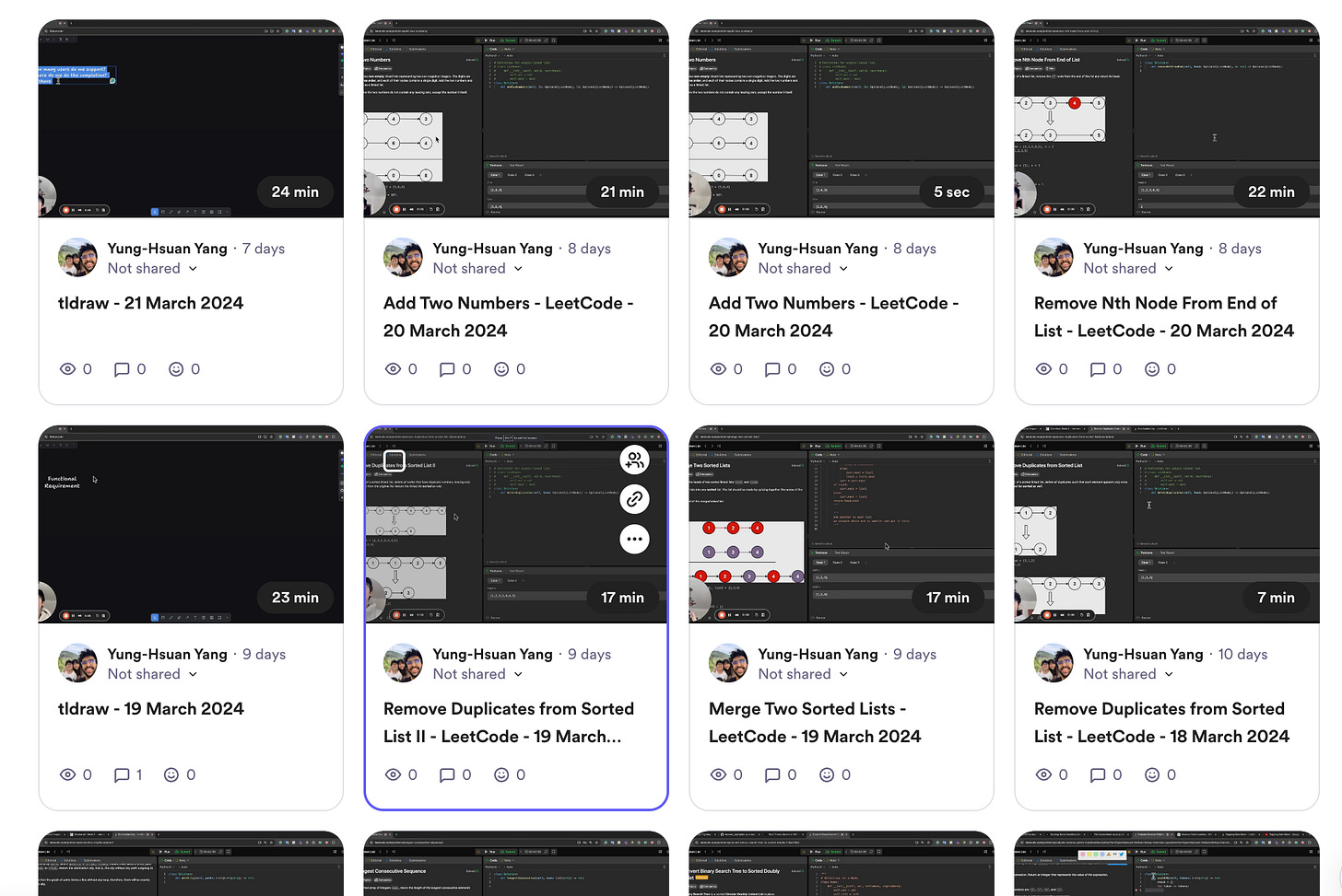As I look through all my recordings, I can clearly see that I fumble and jump ideas when I’m stuck, and my talking tone is completely BORING. I will not want to interview myself! After I went through my own self-feedback loop, I didn’t only solve problems on time, my talk became fun and engaging. I know I’m engaging because one interviewer even wants to write code for me when I present the coding problem as a fun challenge.