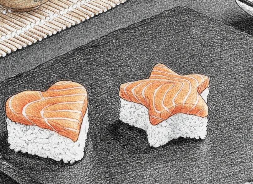 I seared this beautiful, expensive sashimi-level salmon, and she said, “Can I cut it into heart and star shapes?”