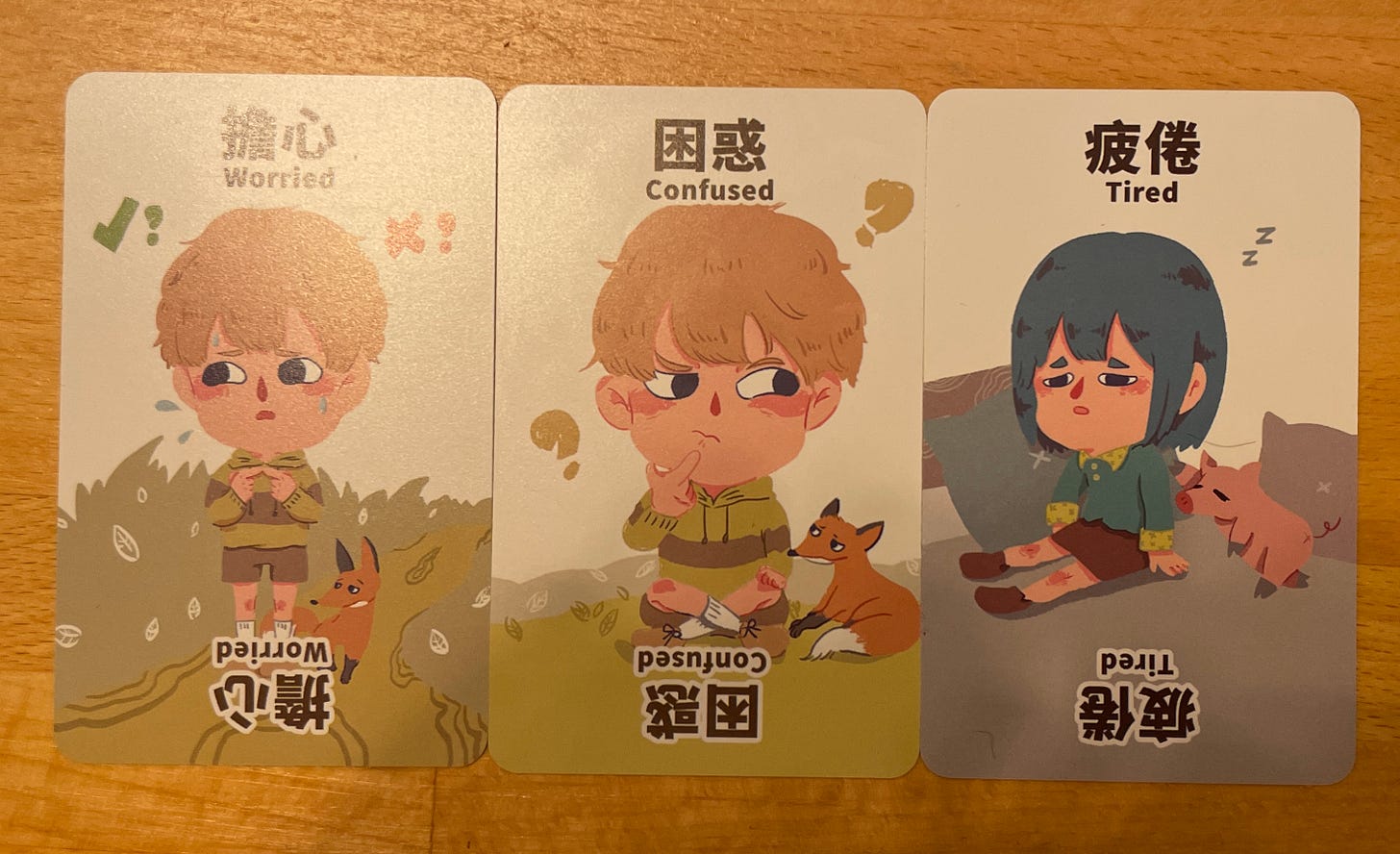 Today, during a social emotional learning game, I shared my situation with friends, and they picked these cards to describe my feelings.