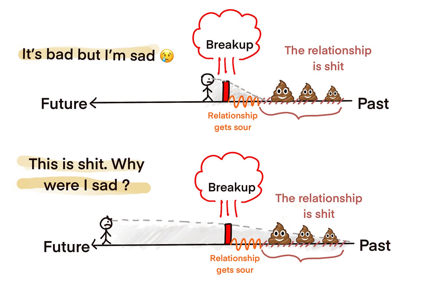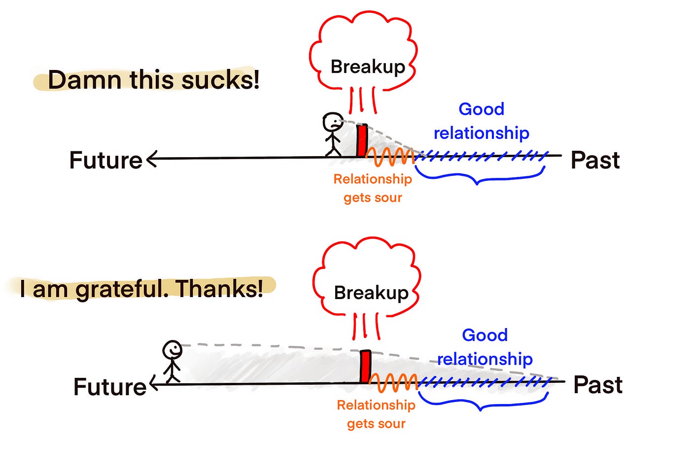 Well… it’s also possible for the opposite to happen. After a terrible relationship like my first one, I was consumed by grief despite knowing it was bad. However, as time passed, my inner God reflected on the entire experience and said, “Wow. Everything was bad from the beginning. I guess you can stop being sad and no longer allow this person to be part of your story.” I never bothered to treat my ex well because it was simply unnecessary. As long as we don’t interfere in each other’s lives, I think that’s kind enough.