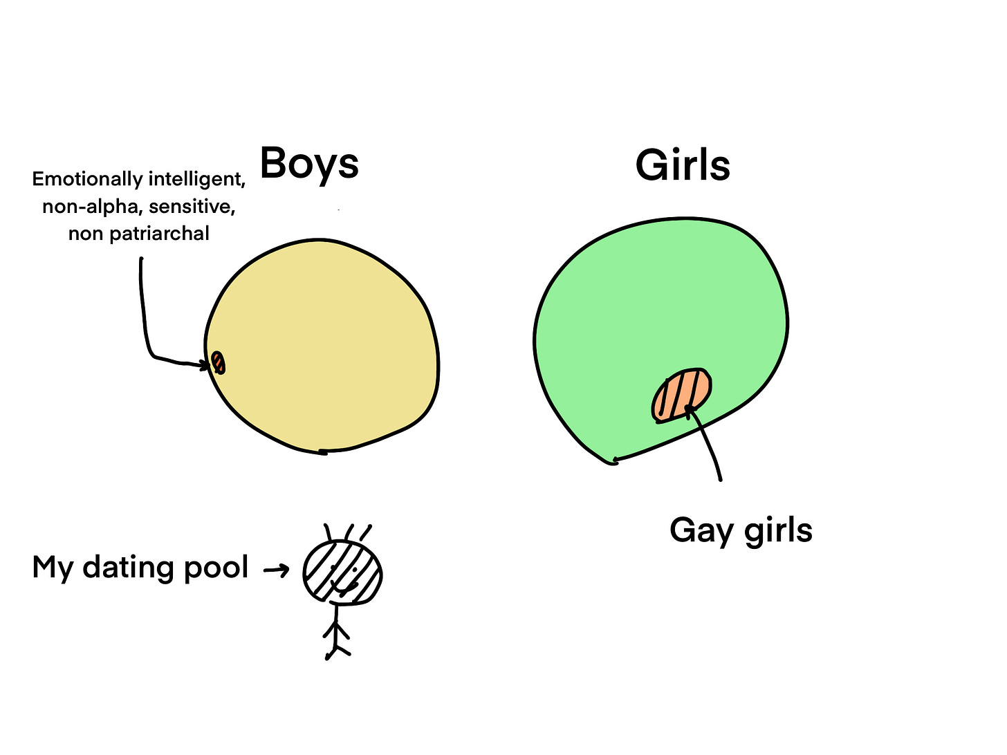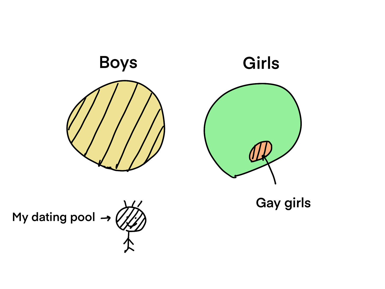 That's when I realized all these experiences added up, and I felt much safer around girls than boys in general. This was due to both theoretical (patriarchy, misogyny) and practical reasons (my average personal interactions with both genders).
