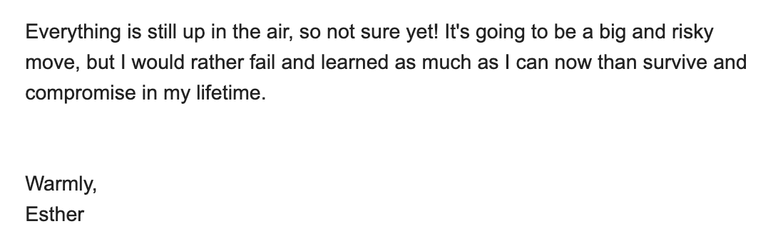 Then last week, I found out they messed up my visa, and kept it from me for a month. That was it. I was burnt out, fed up, and I didn’t care anymore. So, I took a deep breath, walked into the meeting room, and asked.