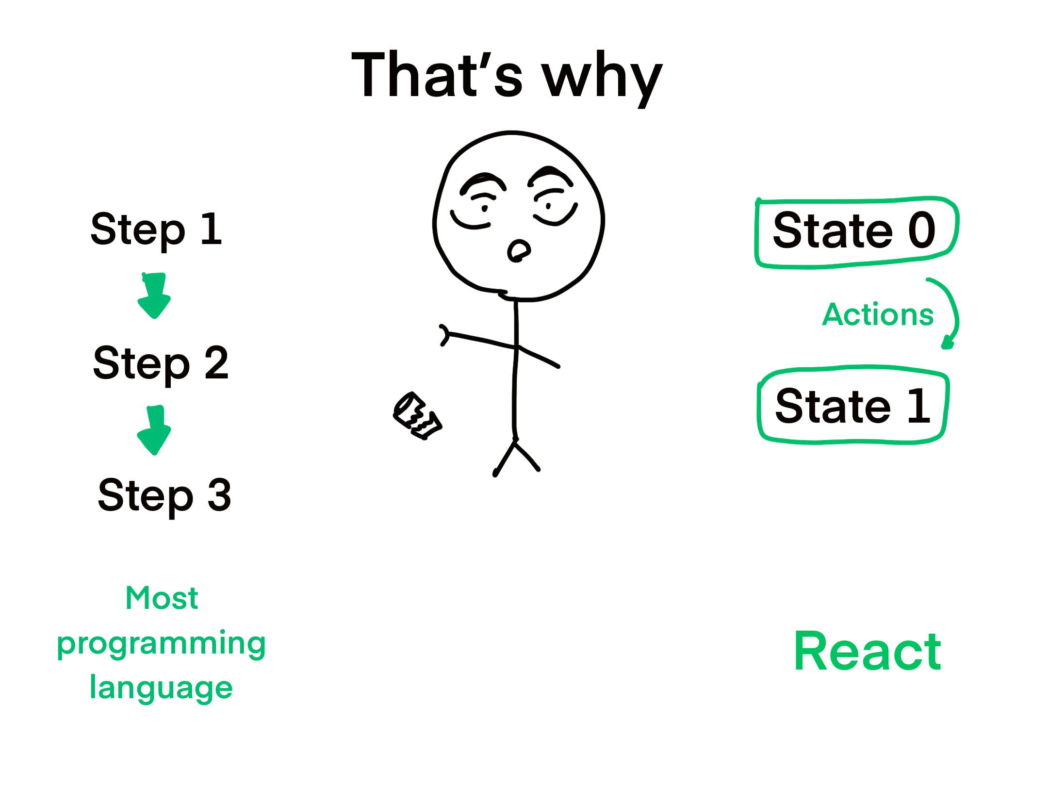 Another example is when I asked a front-end developer about React. I was in all the bugs and asked him how to fix them. Beyond debugging and thinking through the code, he taught me, "There is a difference between declarative vs. imperative language. Imperative language is what you know. You ask the computer to do step 1, step 2, and step 3, while declarative language, like React, is that you only want to know the beginning and the end and ask the code to show it when it happens." All of a sudden, all these weird state management things in React started to make sense to me.