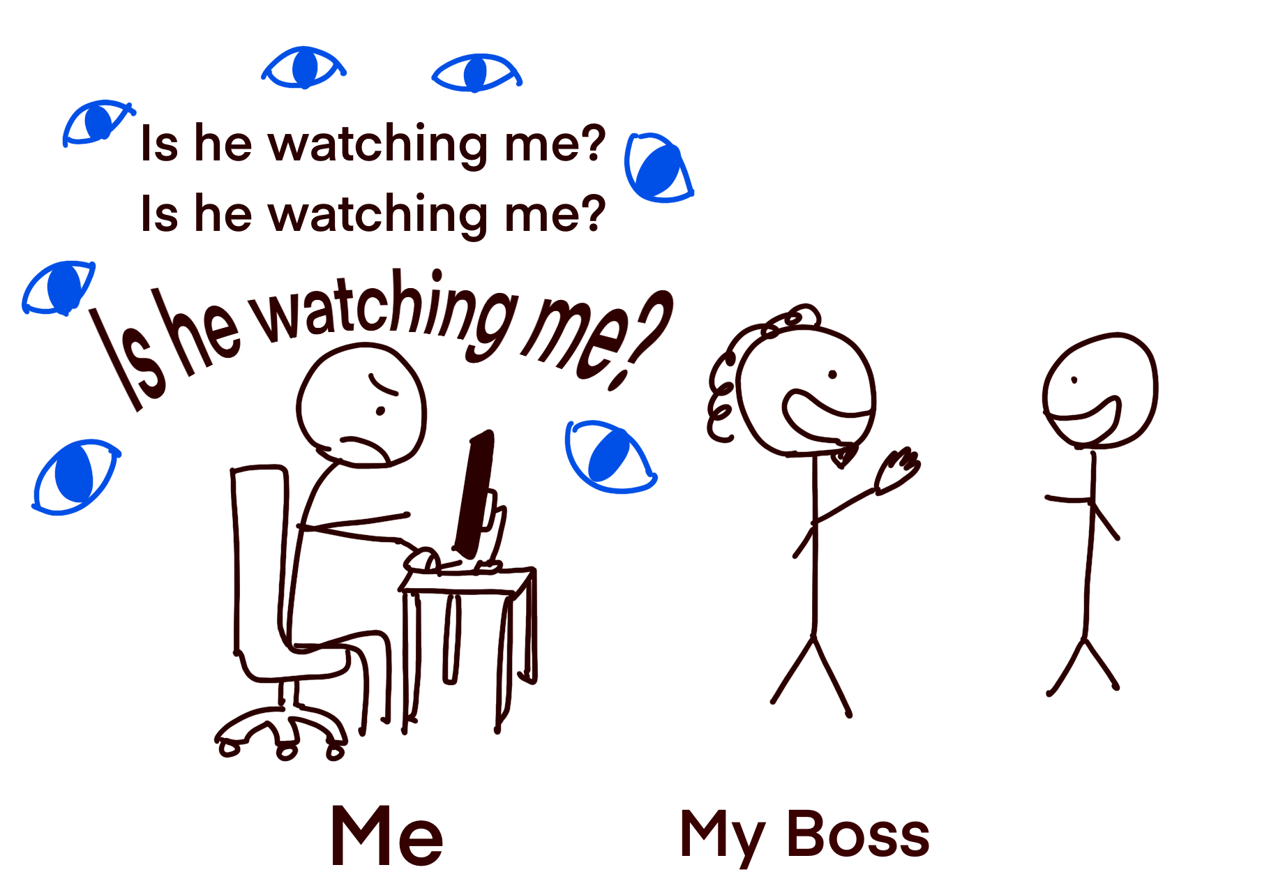 In addition, sitting in the same room with my boss stressed me out even though I’m pretty sure the reality might be very different from my imagination.