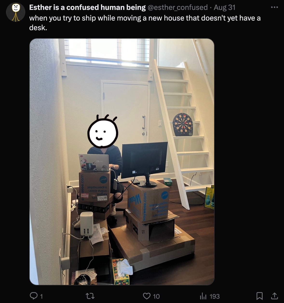 Well, to be fair, I was still working that day, but I didn’t have a desk in the new house, so I stacked all the paper boxes to use as a desk, haha.