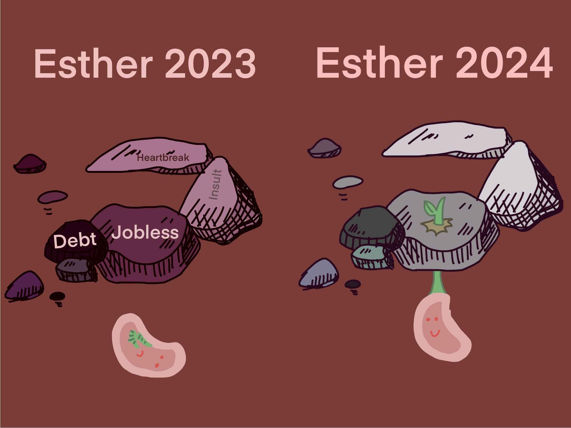 As I reflect on everything I’ve been through this year, tears stream down my cheeks. Thank you, Esther. You can go to sleep now. Goodnight.